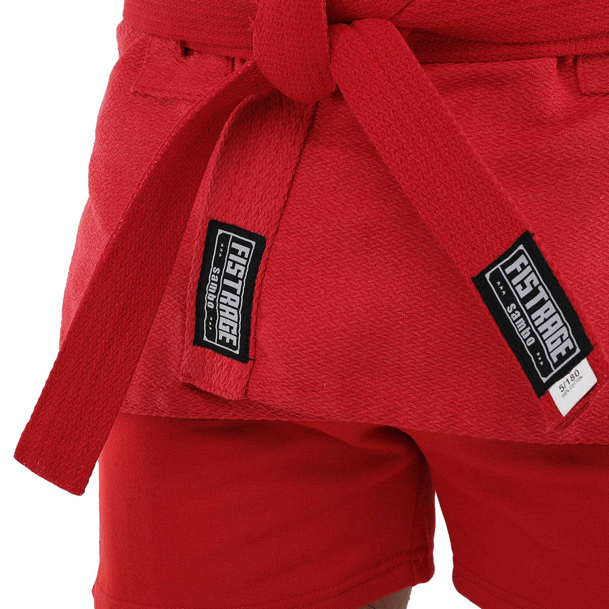 Jachetă kimono Sambo cu pantaloni scurți și curea FISTRAGE VL-5579 130-180cm culori: roșu și albastru